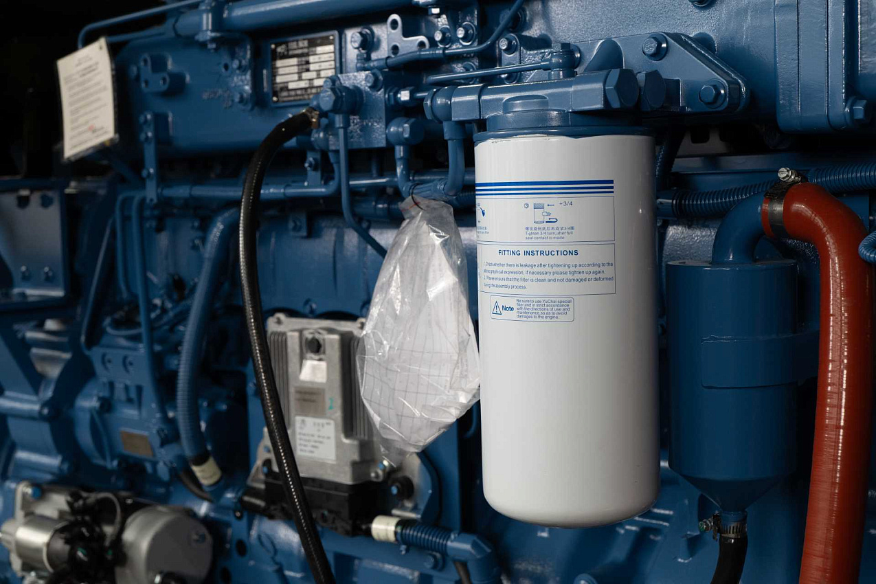 Дизельный генератор 650 кВт с двигателем Yuchai. В комплектацию входит - подогреватель охлаждающей жидкости SmartGen, фильтр-сепаратор топливный, крышка для слива топлива из бака, батарея Varta +подзарядка аккумуляторной батареи SmartGen, промышленный глушитель + компенсатор. Картер двигателя имеет 2 отверстия для масляного насоса и для установки подогревателя масла. Насос для откачки масла из картера двигателя. Медный радиатор FAST рабочая температура до 50С.